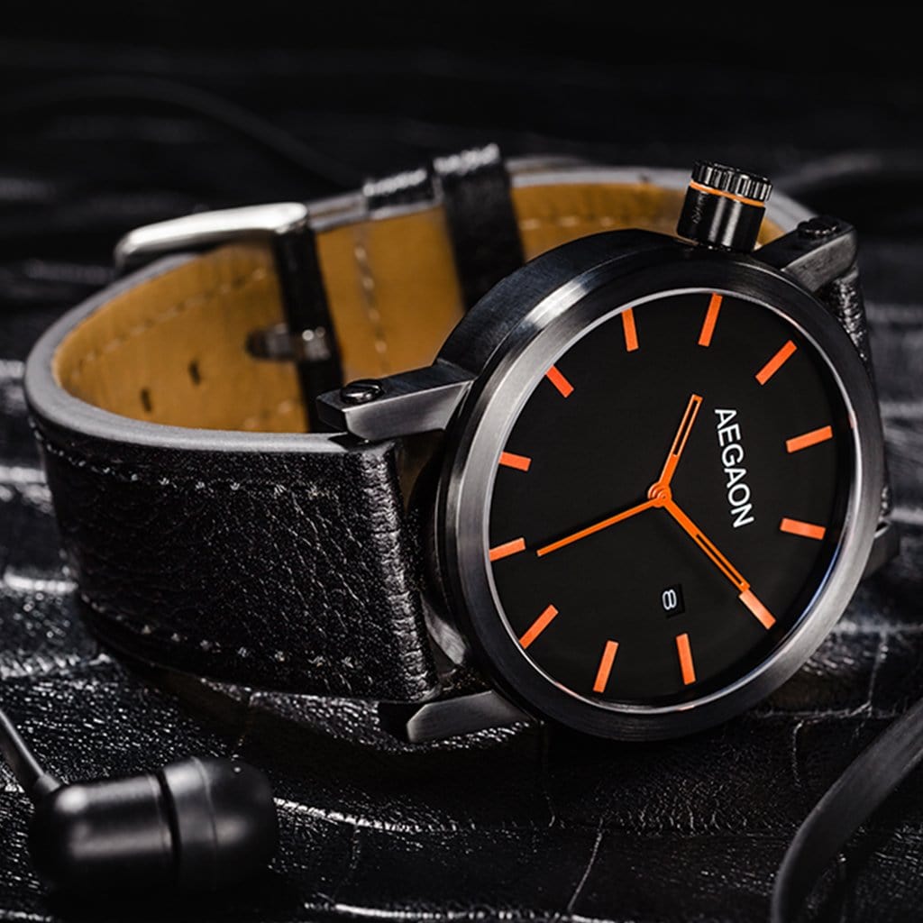 Black genuine leather strap with buffalo grain. Suitable for "Tabula Rasa 44" with stainless steel and black PVD casing.