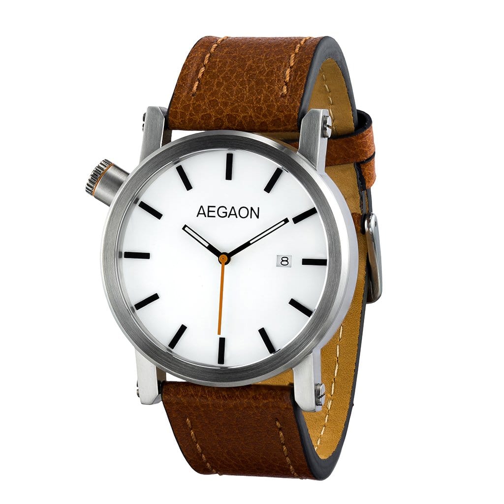 Brown genuine leather strap with buffalo grain. Suitable for "Tabula Rasa 44" with stainless steel casing.